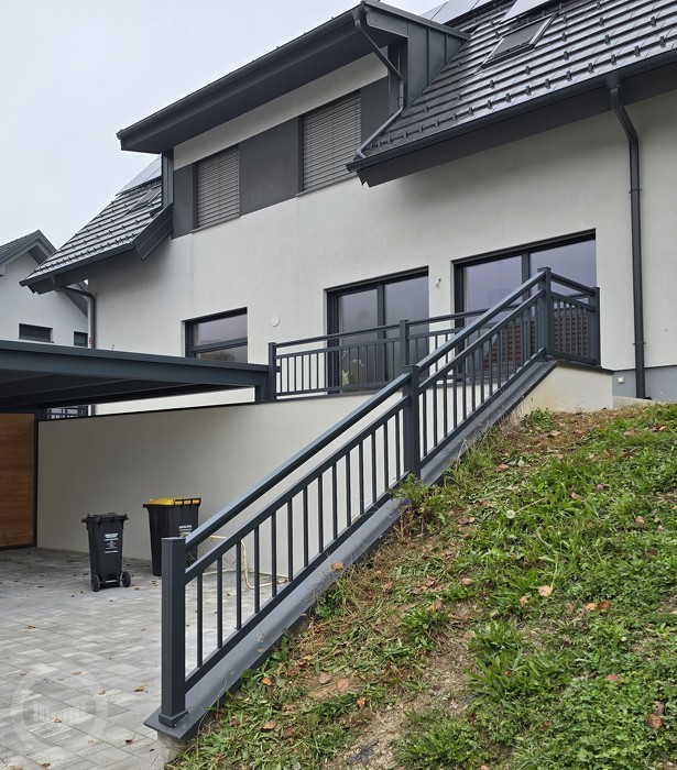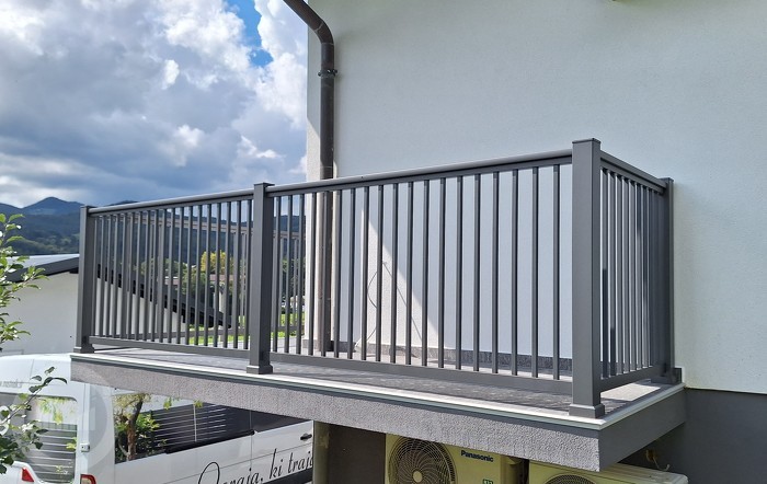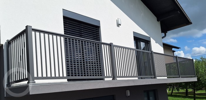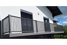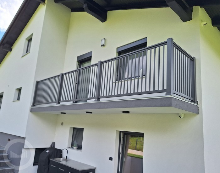 Das Vertikalbalkongeländer besteht im Ganzen aus Aluminium und ist aus scharfkantigen Stäben zusammengesetzt. Anhand seiner klaren und reinen Linien ist es ideal für moderne, minimalistische Gestaltung Ihres Wohnraums. Es handelt sich um ein beständiges Aluminiumaußengeländer, das keine Wartungsarbeiten benötigt.
