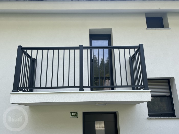 Das Vertikalbalkongeländer besteht im Ganzen aus Aluminium und setzt die Philosophie von traditionellen (geschmiedeten) Toren fort. Wie bei traditionell geschmiedeten Toren ist das Erscheinungsbild des Geländers von beiden Seiten gleich. Das Geländerfeld ist ohne Schweißen und sichtbare Verschraubungen zusammengesetzt. Es handelt sich um eine dauerhaftes balkongeländer, das keine Wartungsarbeiten benötigt. Es besteht die Möglichkeit zwischen drei verschiedenen Dekorabdeckungen für Stäbe zu wählen.