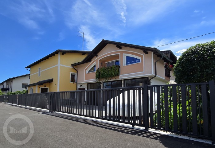 Der Zaun besteht aus vertikalen Aluminiumleisten, die 90 mm breit und 18 mm stark sind, und aus Stäben ohne Abdeckkappen mit einem Durchmesser von 20 mm. Der Zaun iis am oberen Ende mit einem Griff abgeschlossen.