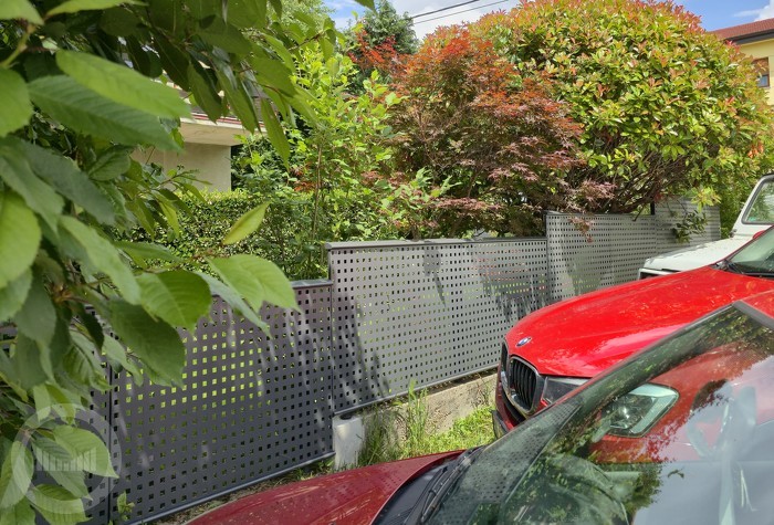 Das Tor aus perforiertem Blech besteht aus gleichmäßiger Perforation in Quadratform (KV 20-48, 5).