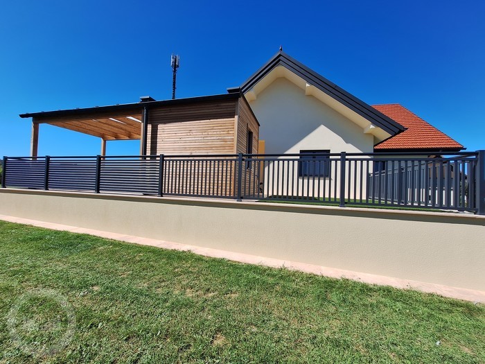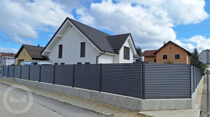 Der horizontale Zaun »RV« ist das allerneueste Zaunsystem, das vollständig aus Aluminium besteht. Der Außenzaun basiert auf dem sichtbar-unsichtbar-Prinzip (sichtbar von innen nach außen, unsichtbar von außen nach innen). Das Zaunfeld ist ohne Schweißnähte zusammengesetzt. Es handelt sich um einen beständigen Zaun, der keine zusätzlichen Wartungsarbeiten benötigt.