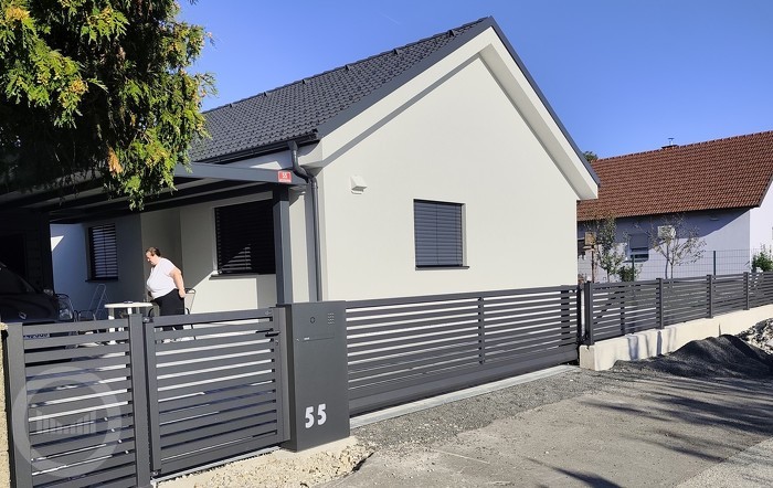 Der horizontale Zaun »PV« ist das allerneueste Zaunsystem, das vollständig aus Aluminium besteht. Der Zaun eignet sich besonders zur modernen Gestaltung Ihres Wohnraumes mit klaren und sauberen Linien. Das Erscheinungsbild des Zaunes ist von beiden Seiten gleich, wobei das Zaunfeld ohne sichtbare Schweißnähte und Verschraubungen zusammengesetzt ist. Es handelt sich um einen beständigen Zaun, der keine zusätzlichen Wartungsarbeiten benötigt.